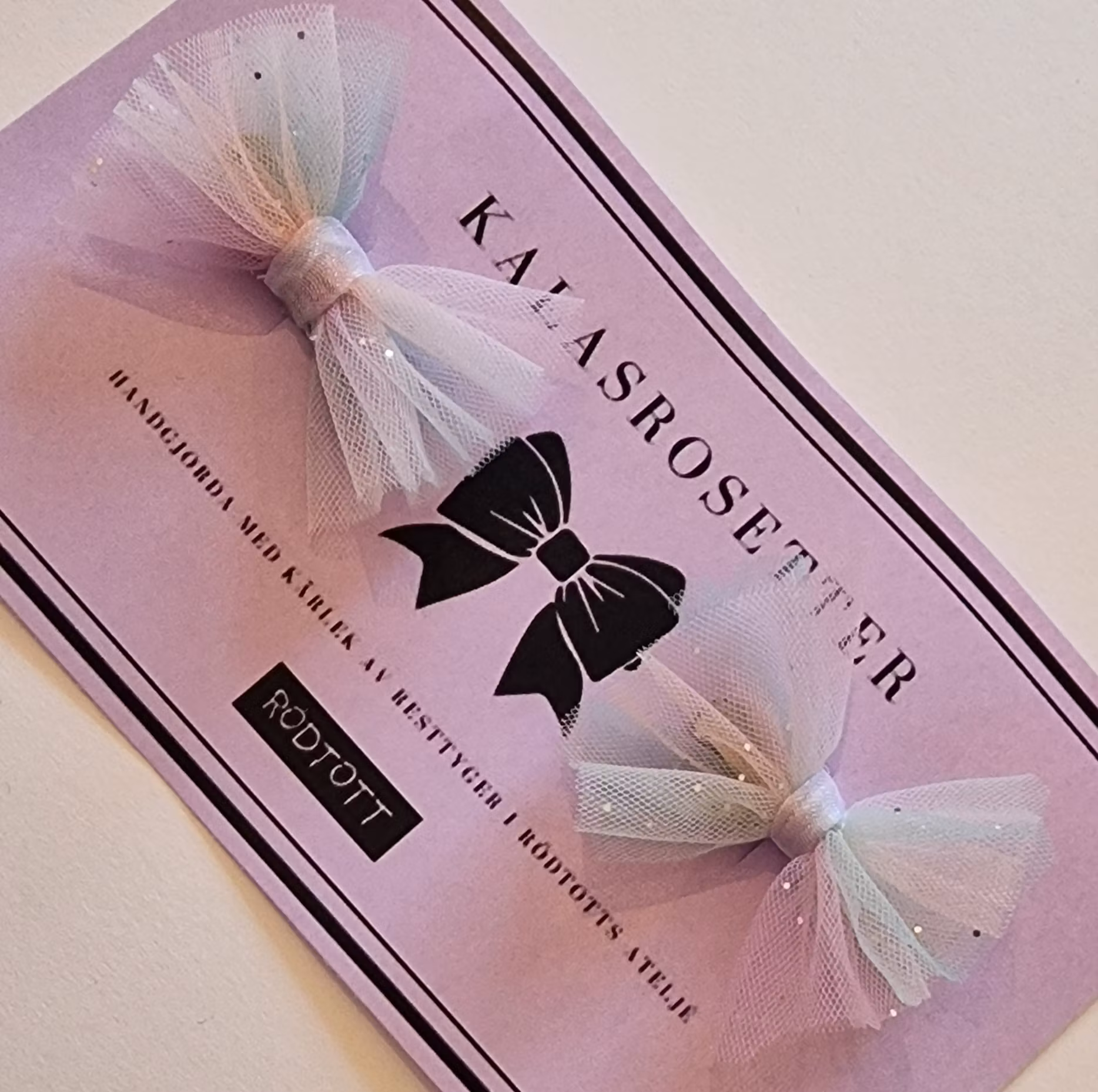 Kalasrosetter i mjuk regnbågsfärgad glittertyll.
