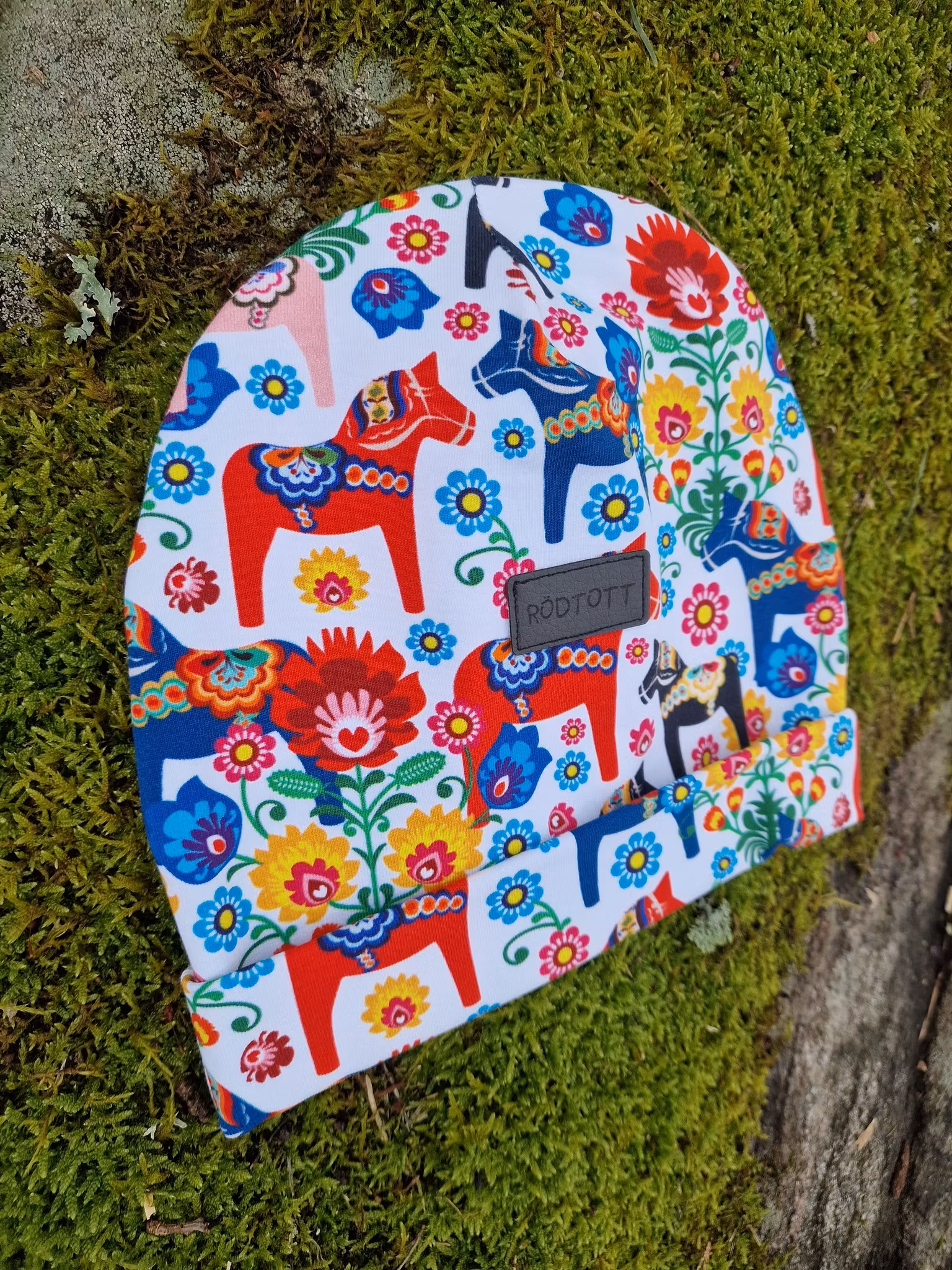 Rödtotts mössa med uppvikt kant. Den ultimata barnmössan för lek och bus! Tillverkad i Sverige med kärlek och omsorg för vår planet.