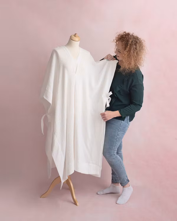 En underbar strandkimono till vuxen. Kimonon är öppen i sidorna och hålls ihop av knytband.